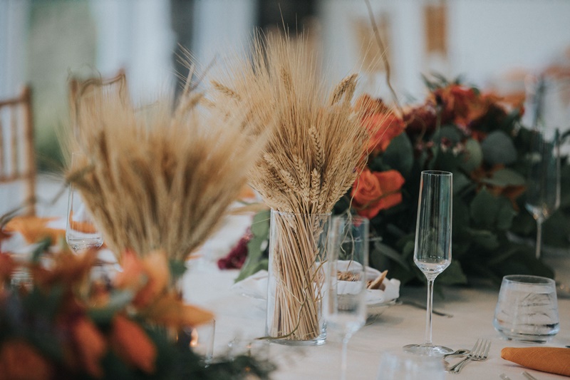 9月に挙式をされていたお客様で、秋をテーマにオレンジをメインカラーとして瓶に麦を入れたり