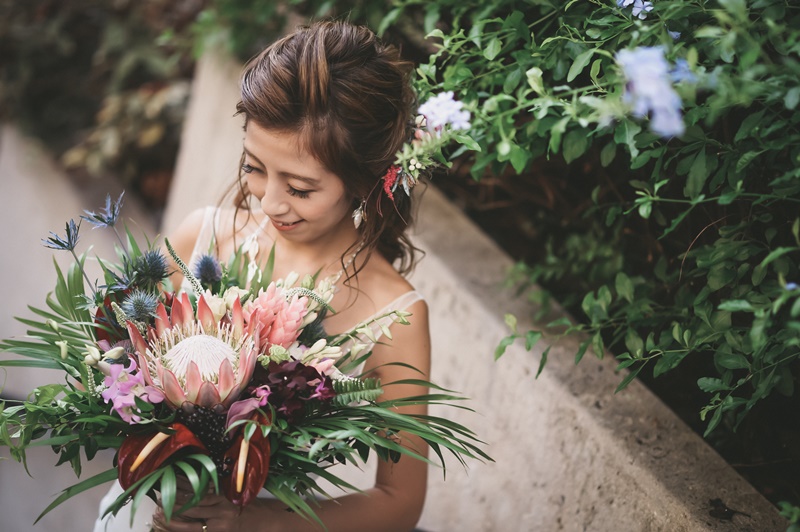 今回、ご紹介させて頂くブーケのテーマは、「ヴィンテージとトロピカルミックスブーケ」